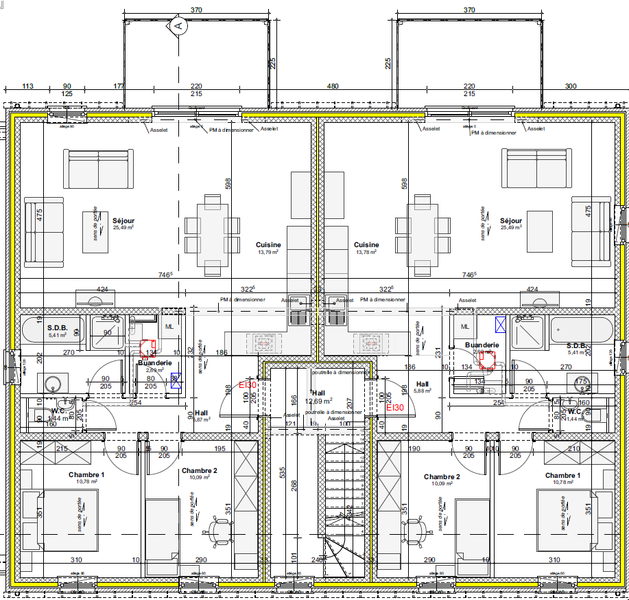 Eléments techniques : chauffage par le sol, 4 panneaux photovoltaïques par appartement, chaudière gaz à condensation.