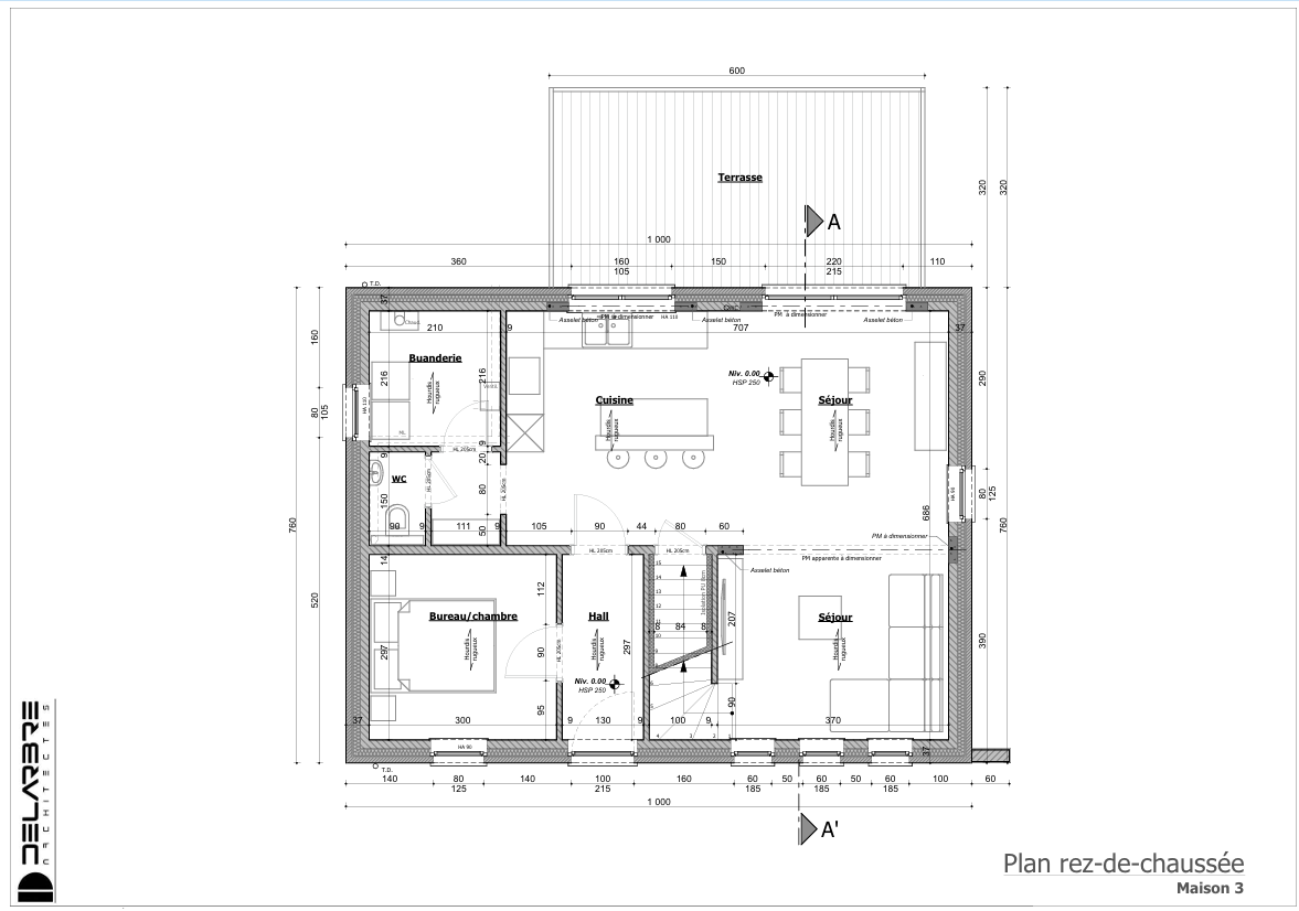 Maison vendue clé sur porte (sanitaire, cuisine équipée, carrelage, parquet, aménagements extérieurs, impétrant, etc…). Le prix comprend également les frais d’architecte, la peinture ainsi qu’un nettoyage de chantier.