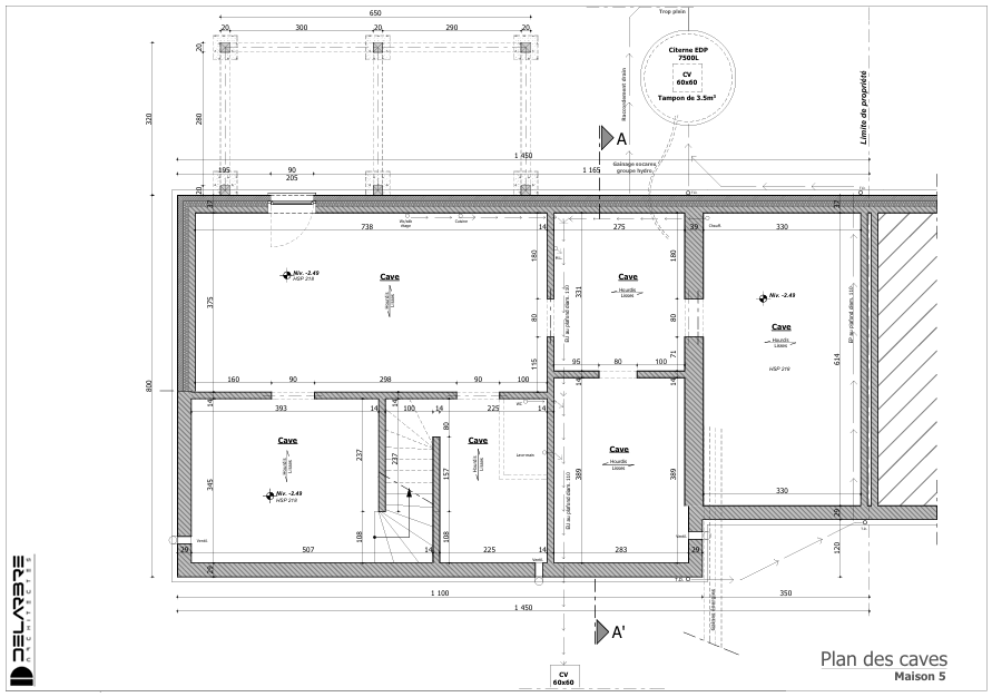 Eléments techniques : chauffage par le sol, 10 panneaux photovoltaïques, chaudière gaz à condensation, citerne eau de pluie de 7500L.