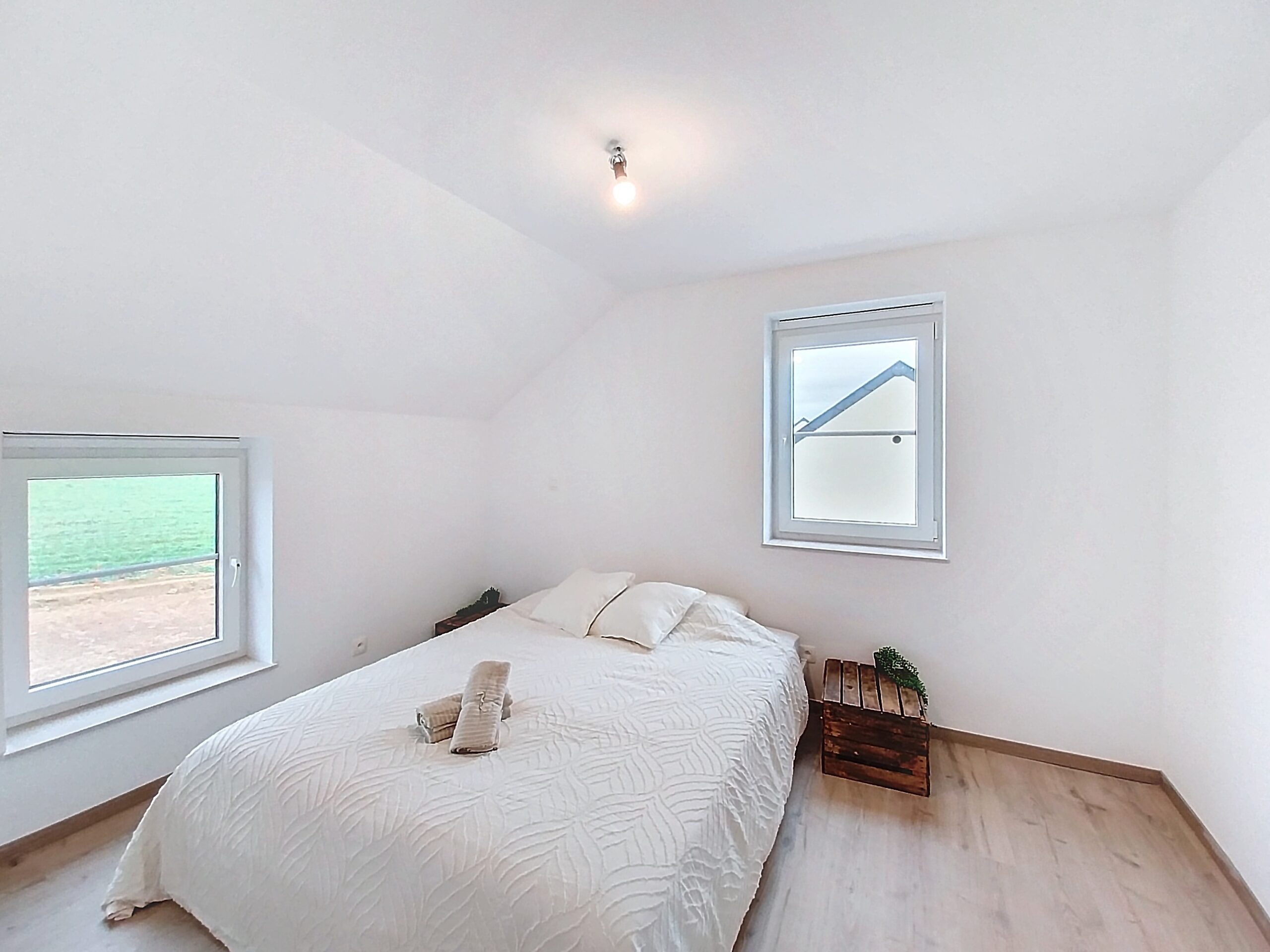 Eléments techniques : pompe à chaleur, chauffage sol, 10 panneaux photovoltaïques, citerne eau de pluie, cuisine équipée et sanitaires inclus.